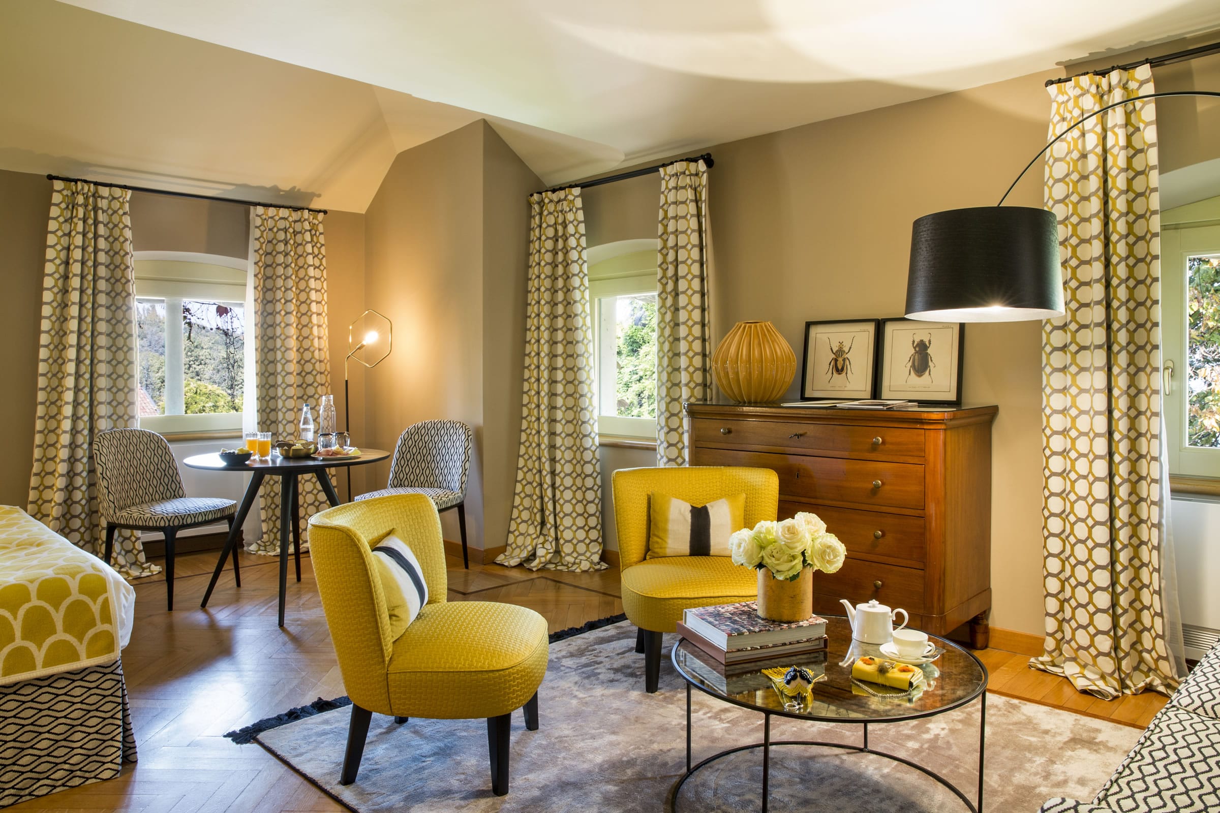 The spacious Deluxe rooms at L’Albereta feature warm colours and are furnished with period furniture skilfully combined with exclusive accessories from around the globe. The fine-finish bathrooms feature a shower and/or whirlpool bath tub.