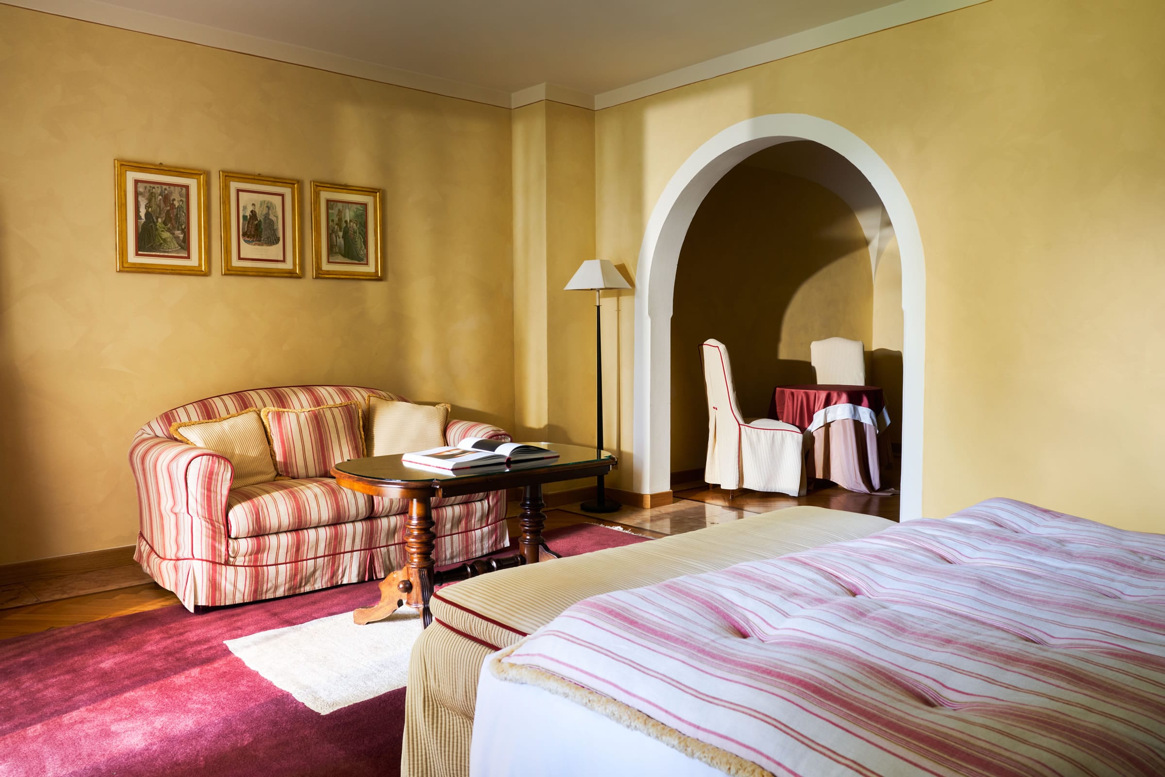 Located on the ground floor, the Garden Deluxe rooms have a private garden overlooking the avenue leading to the Vigna Leone vineyard. Each room is elegantly furnished with period furniture, skilfully combined with exclusive furnishings from around the world.
