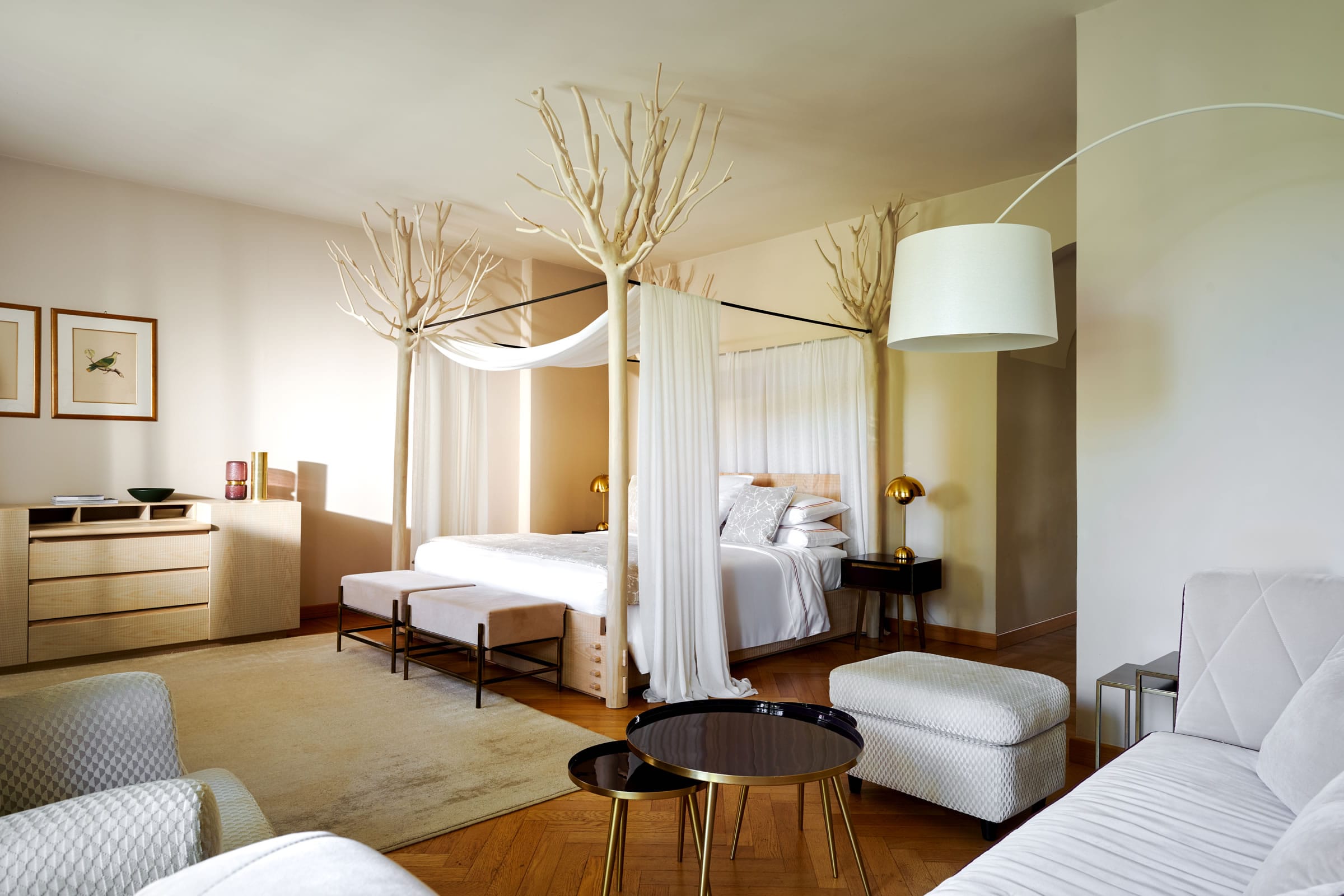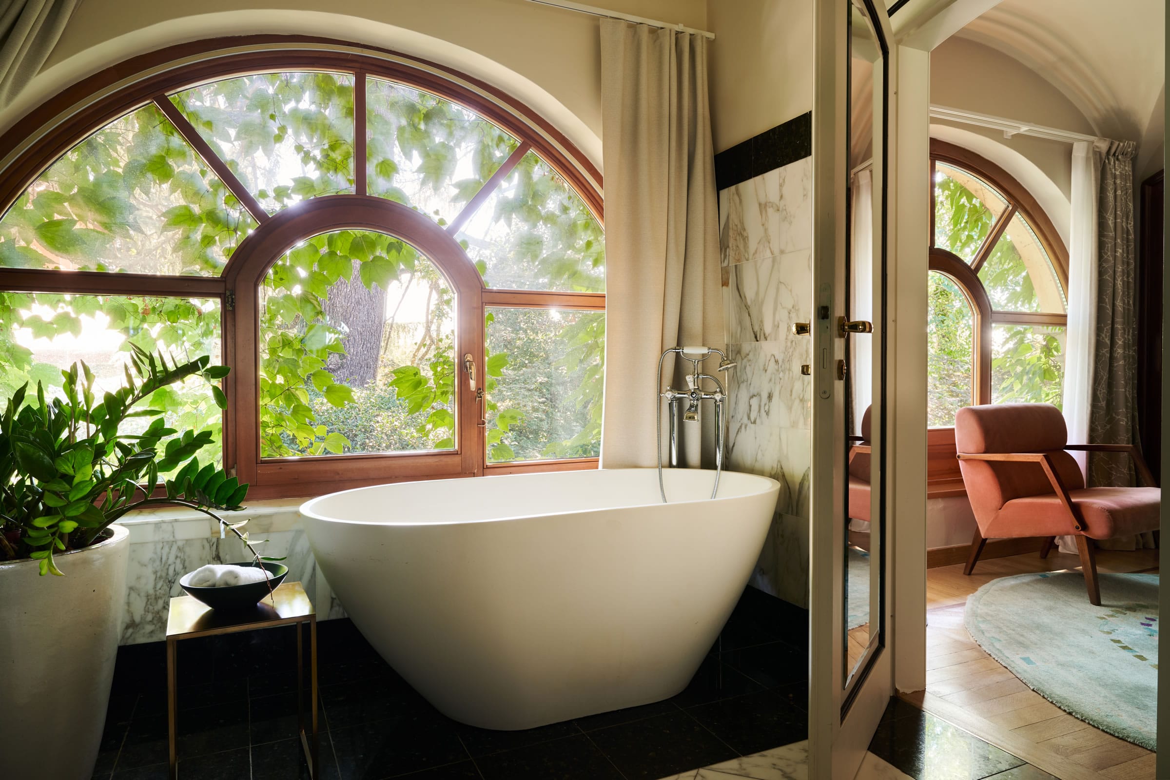 Located on the first floor, the Terrace Deluxe rooms have a private balcony overlooking the nearby vineyards. The furnishings and décor vary from room